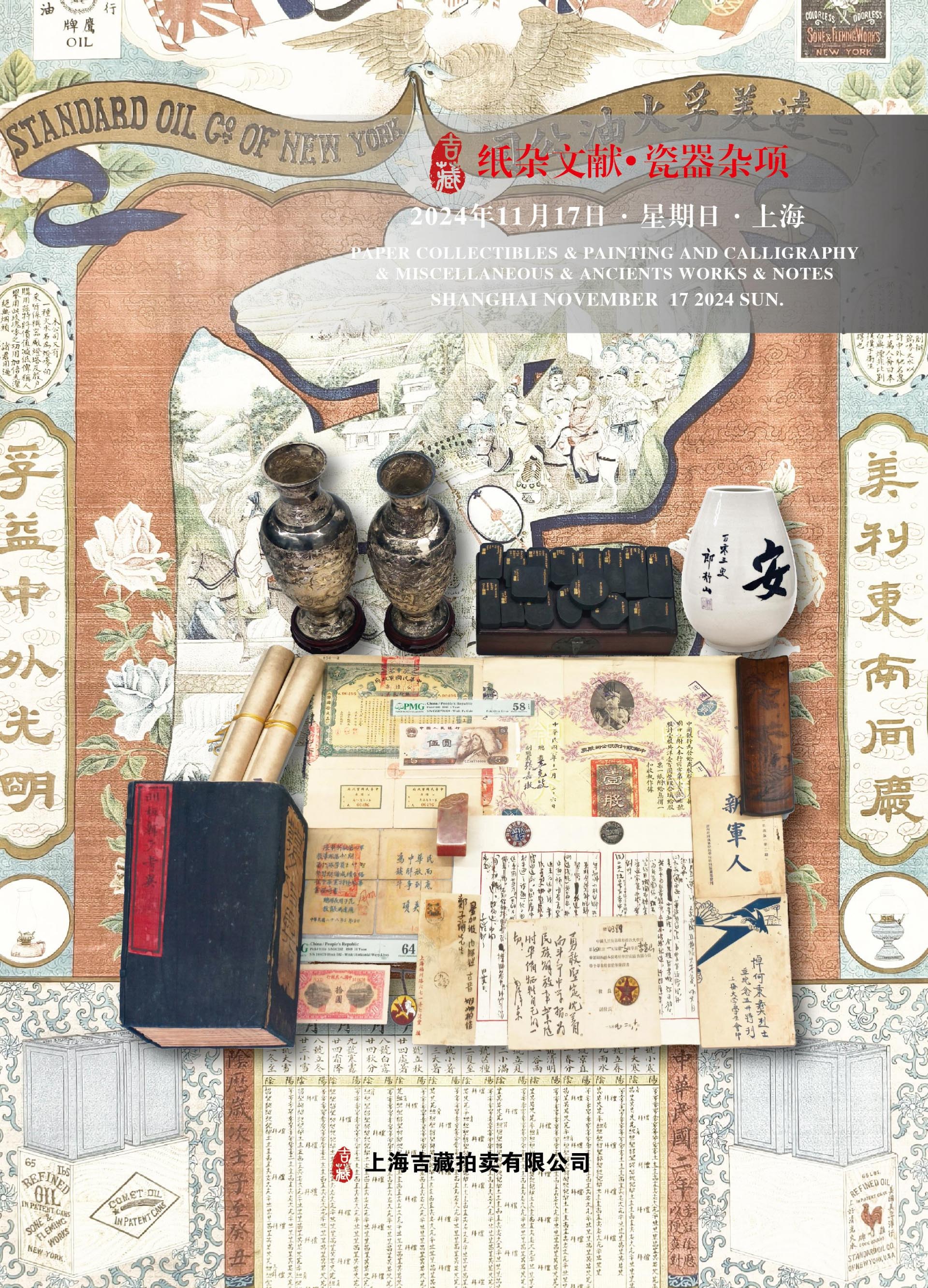 2024吉藏纸杂文献、书画、杂项、古籍、钱币秋季专场拍卖会